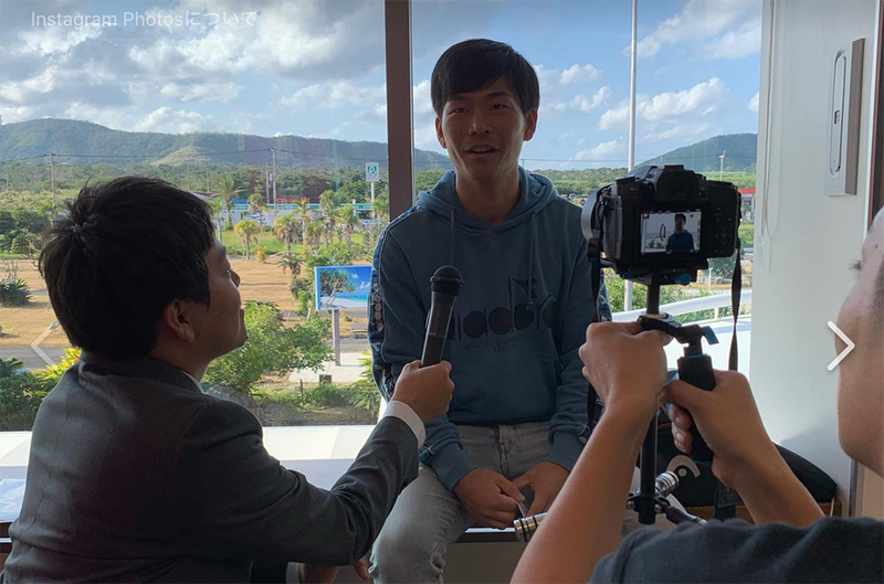 毎年レッスンで訪れる奄美大島では、東京からきたコーチとして地元メディアの取材も!