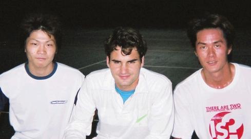 (上の写真は2006年にAIGオープンで来日したロジャー=フェデラー選手、松井プロと一緒に練習した際の写真です)